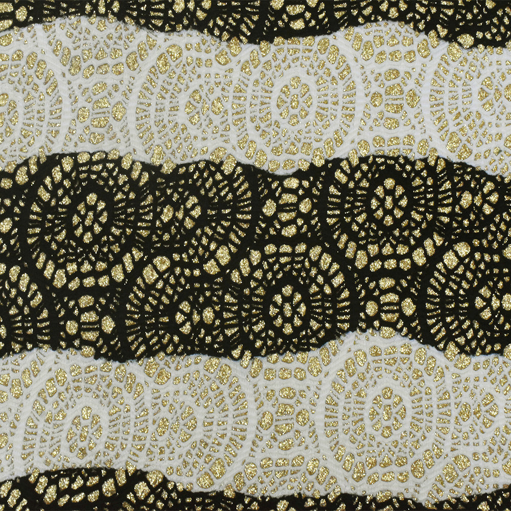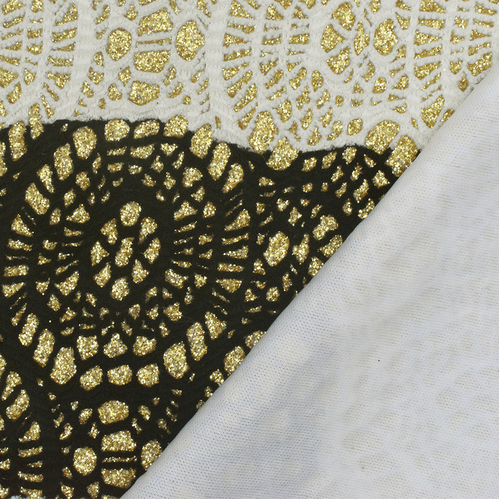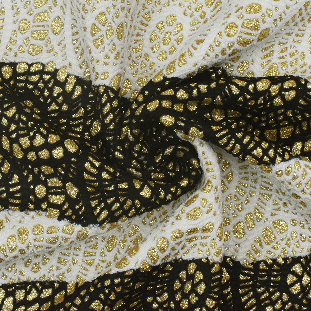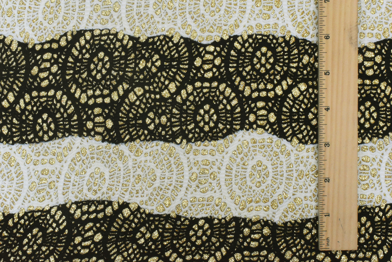Black-White-Gold Lace-Like Bonded Interlock Knit Fabric