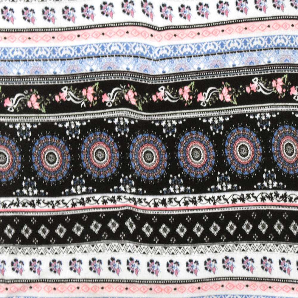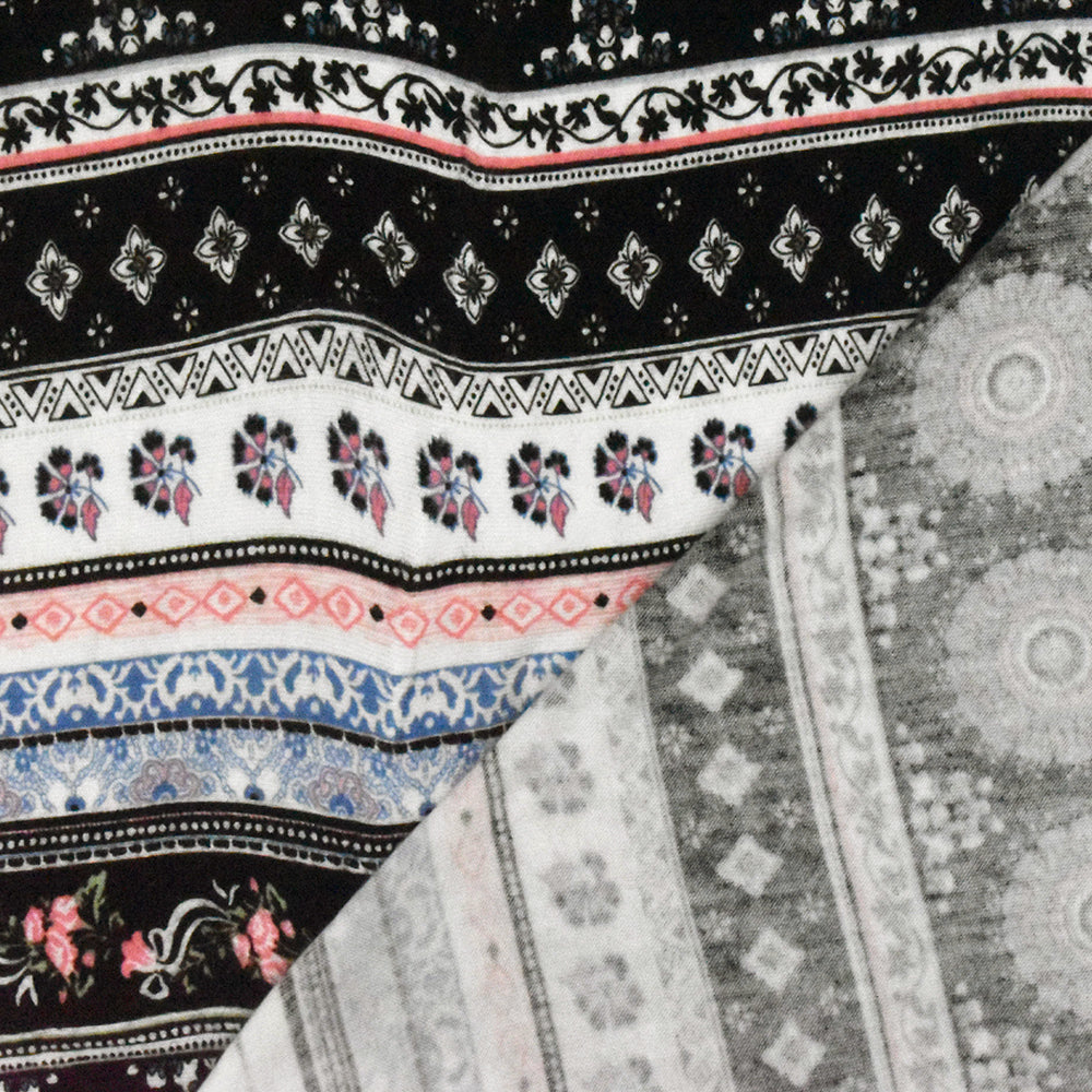 Black-White-Multi Moroccan Stripe Printed Stretch Rayon Jersey Knit Fabric