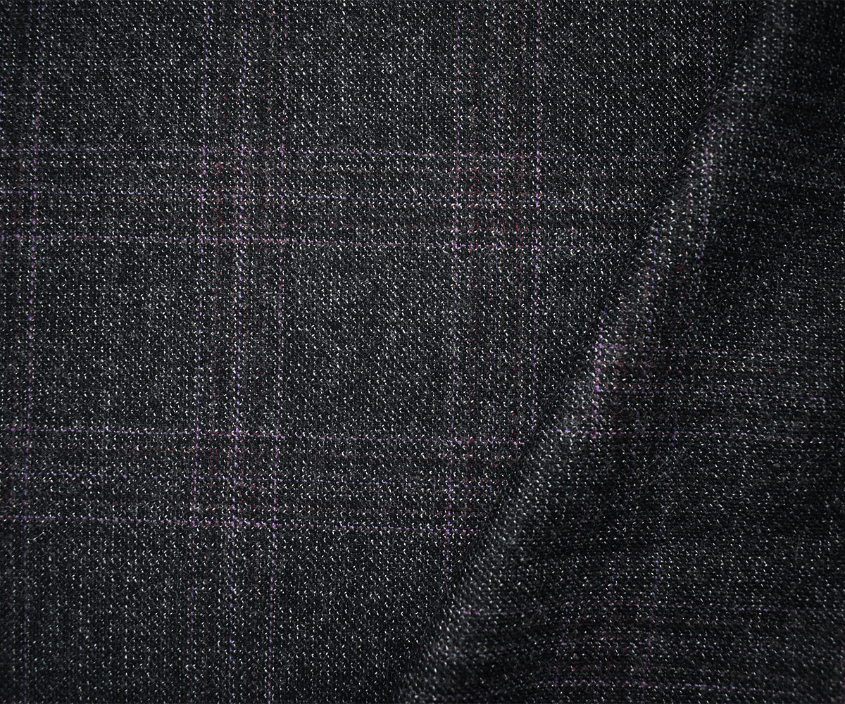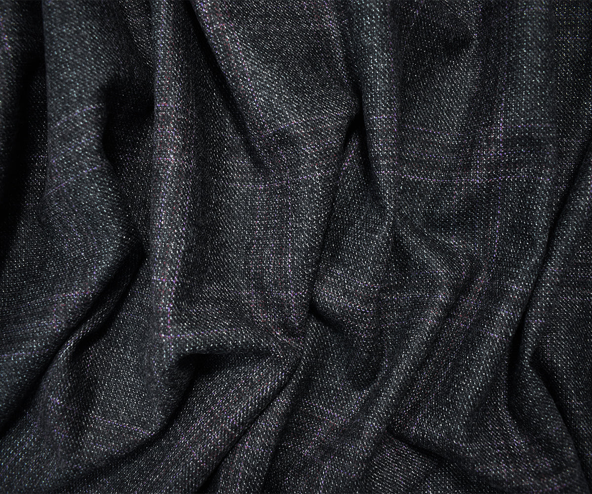 Black-White-Purple Wool Plaid Twill Woven Suiting Fabric
