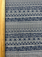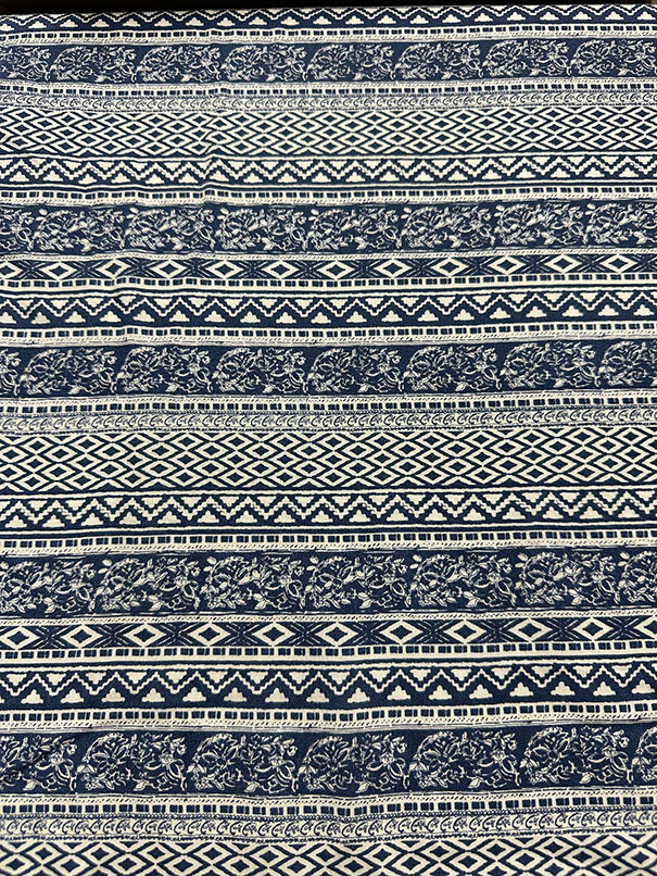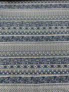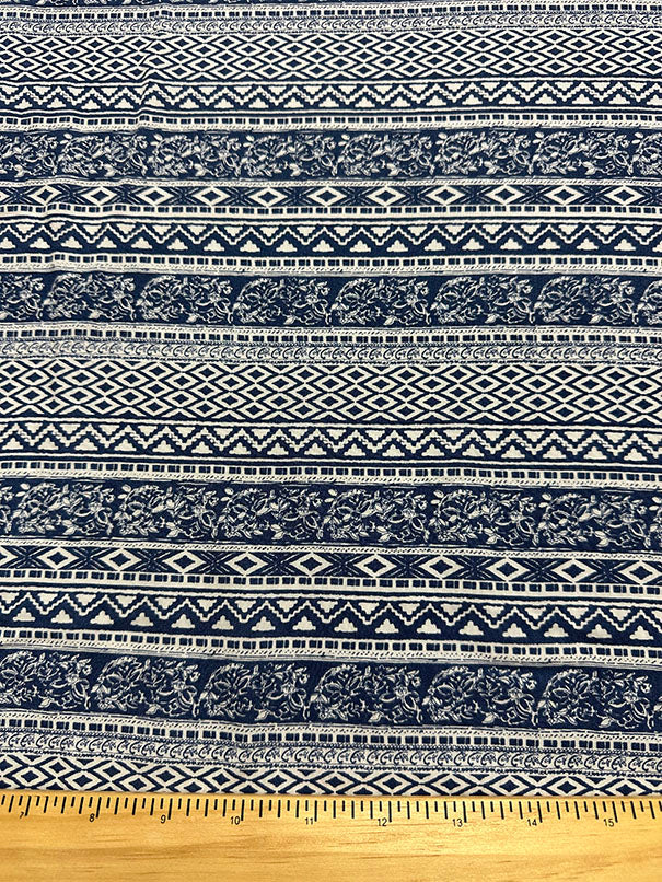 Blue and White Multi Stripe Print Rayon Challis Fabric