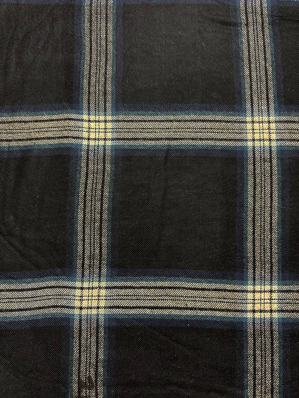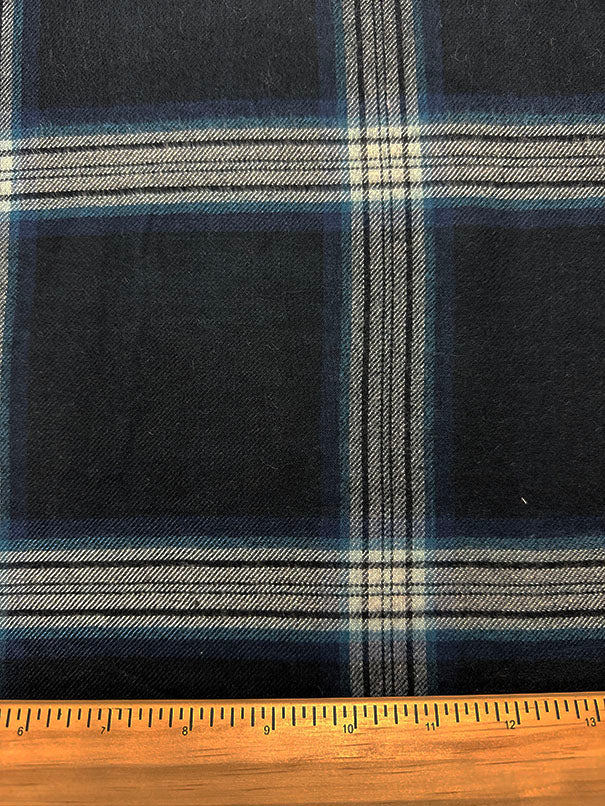 -Blue, Black, & White Plaid Single Sided Flannel Shirting Fabric