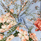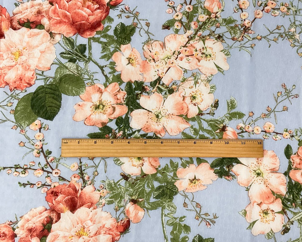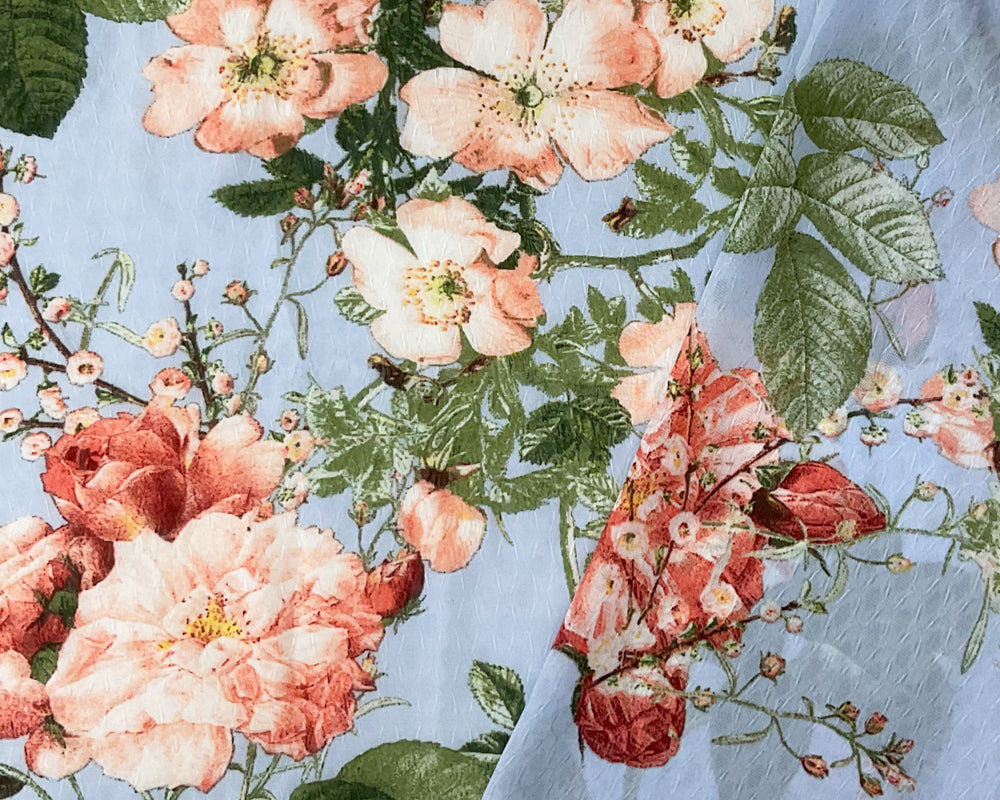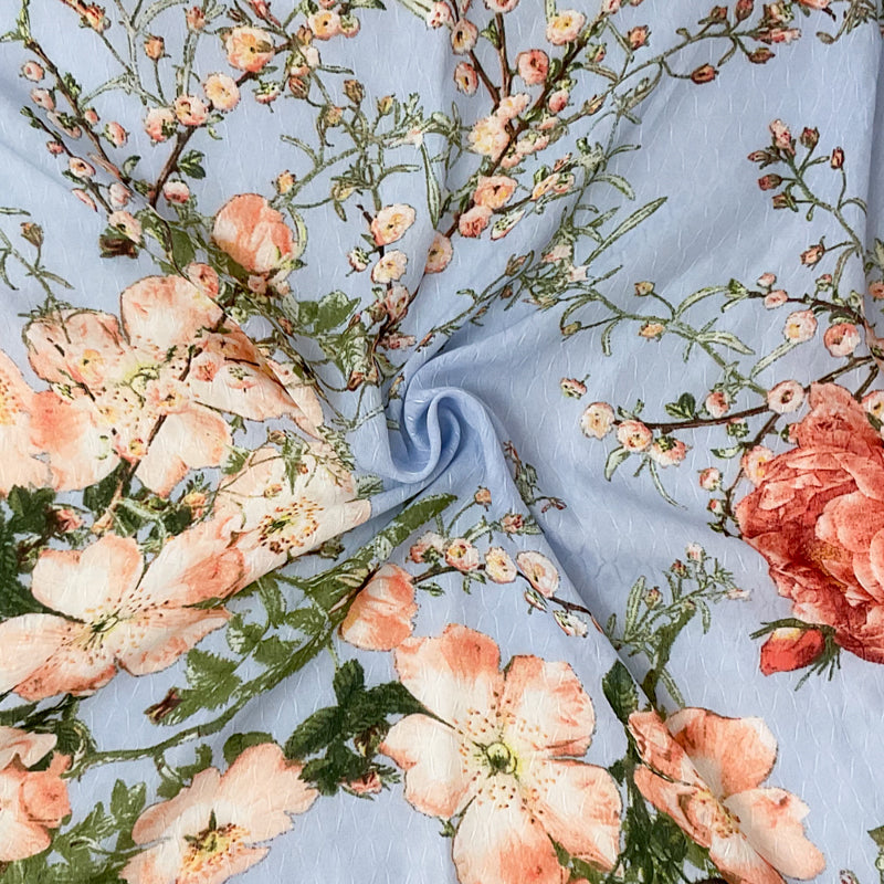 Blue-Multi Poly Floral Printed Ogee Dobby Chiffon Woven Fabric