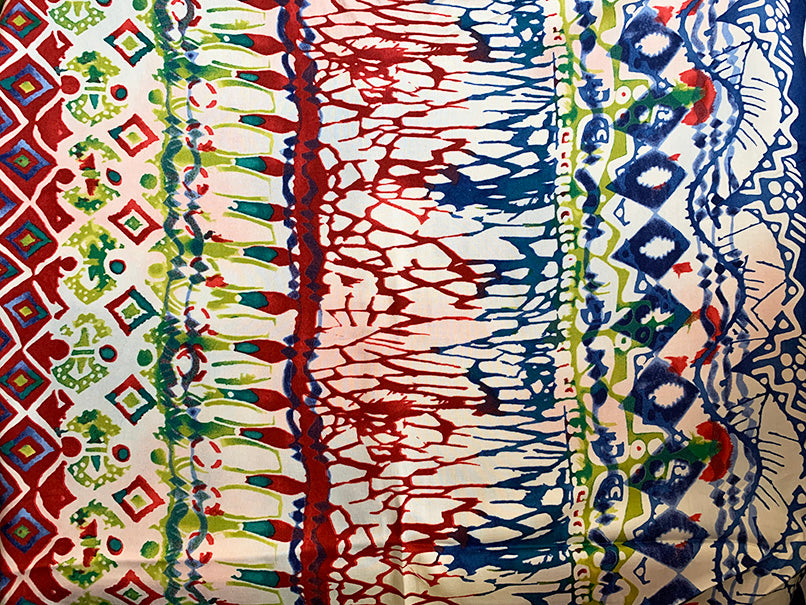-Blue, Green, White, & Ivory Multi Print Rayon Challis Fabric (Pattern repeats on each side 29" up to meet in center of fabric folded in half of width)