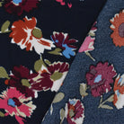 Blue-Red-Multi Floral Printed Poly Momie Woven Fabric