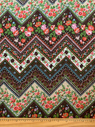 -Red, Pink, White, Green, Blue, Beige, Brown, & Orange Floral Chevron Print Rayon Challis Fabric