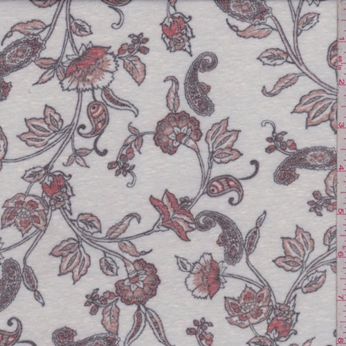 Chalk/Clay Stylized Floral Slub Jersey Knit Fabric