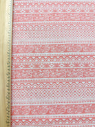 Coral and White Multi Stripe Print Rayon Challis Fabric