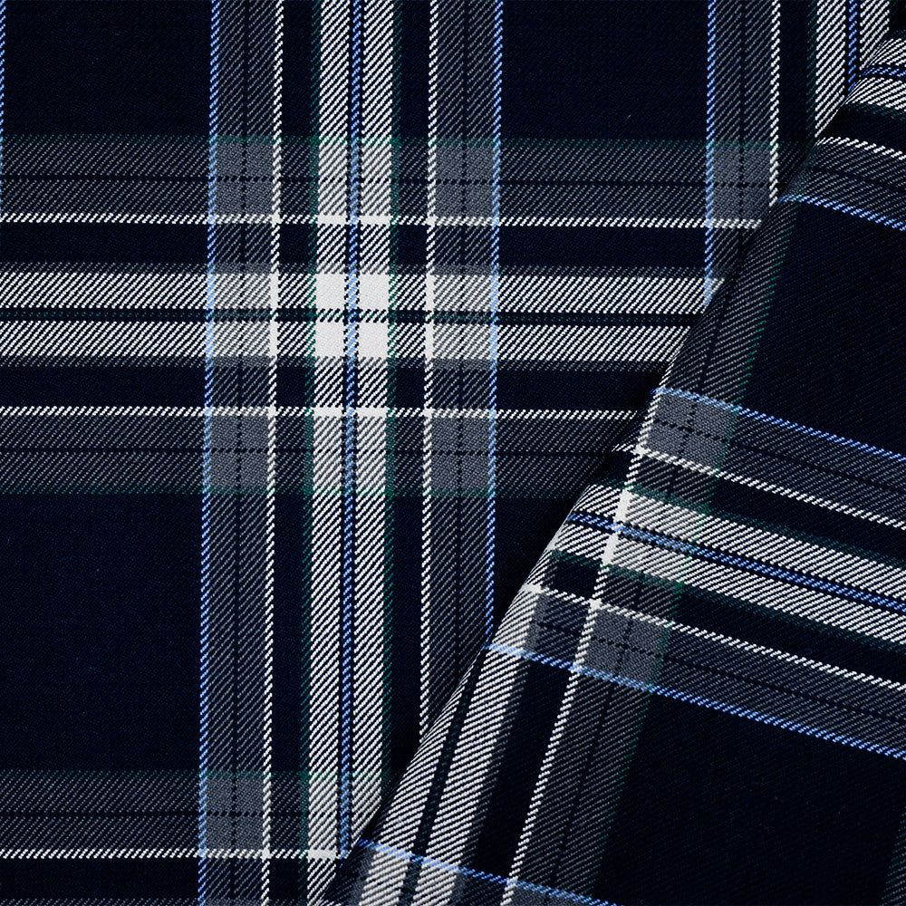 Dark Navy Blue-White-Multi Poly-Wool Plaid Twill Suiting Woven Fabric