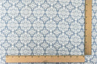 Dusty Blue- Ivory Moroccan Printed Stretch Rayon Momie Woven Fabric