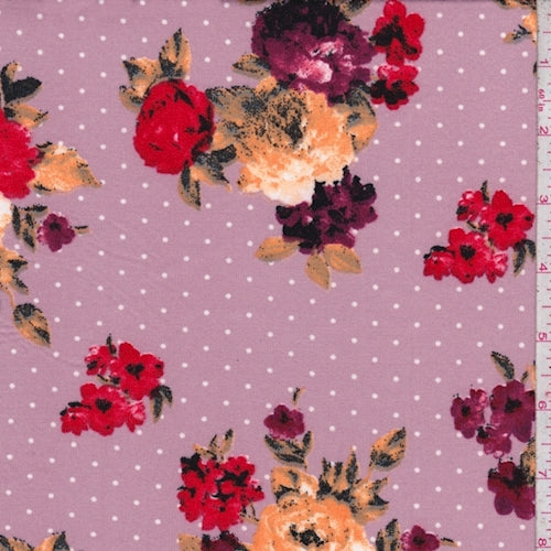 Dusty Mauve Floral Dot Double Brushed Jersey Knit Fabric