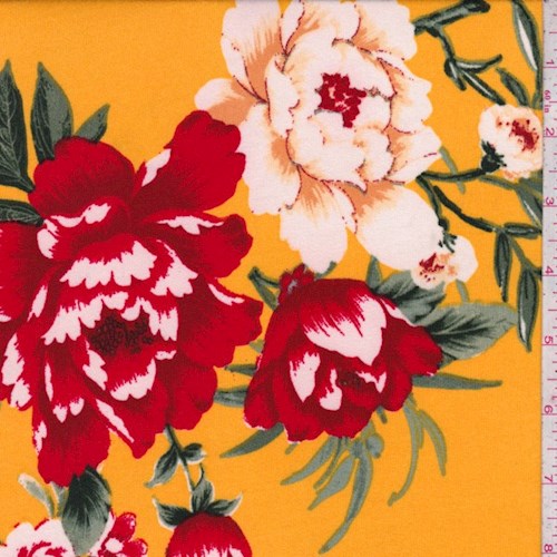 Goldenrod Floral Double Brushed Jersey Knit Fabric