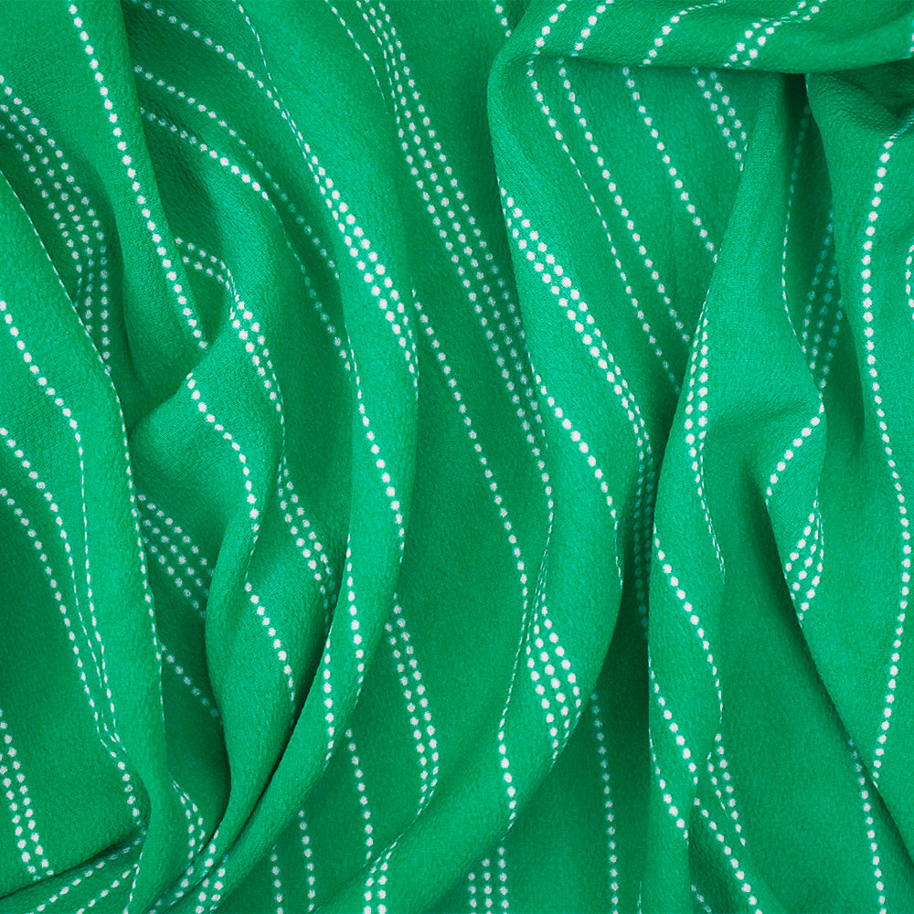 Green-White Dotted Stripe Printed Crepe Georgette Woven Fabric