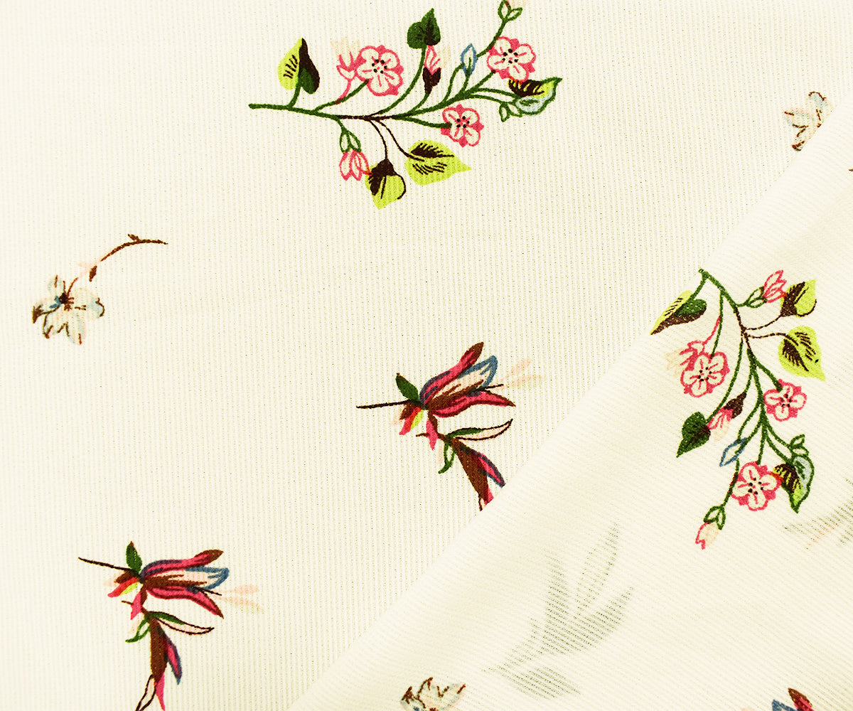 Ivory-Green-Multi Poly Floral Printed Semi-Sheer Striped Dobby Woven Fabric