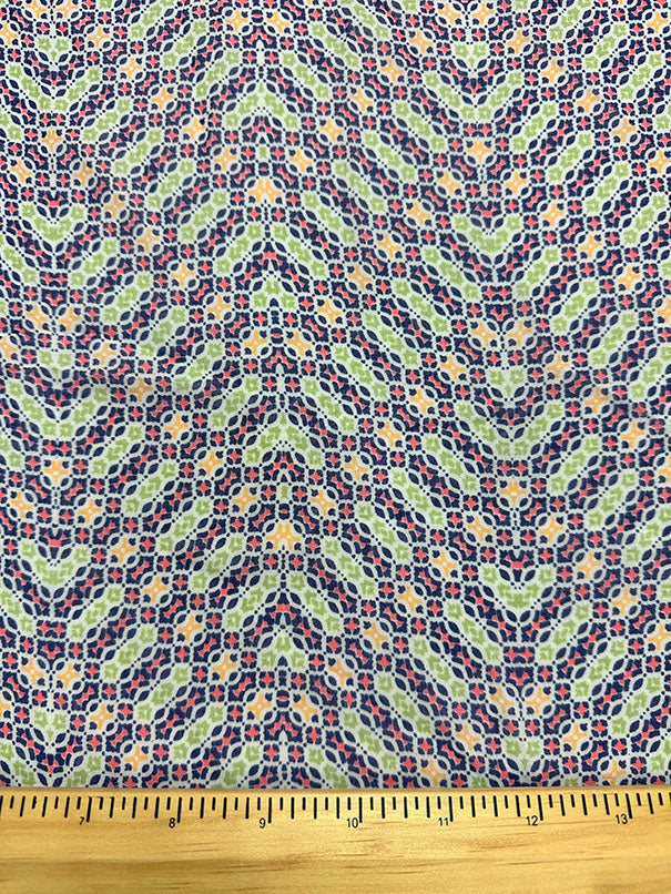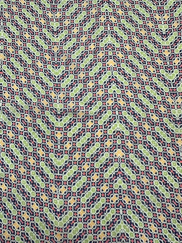 Lime Green Geometric Herringbone Poly Print Chiffon Fabric