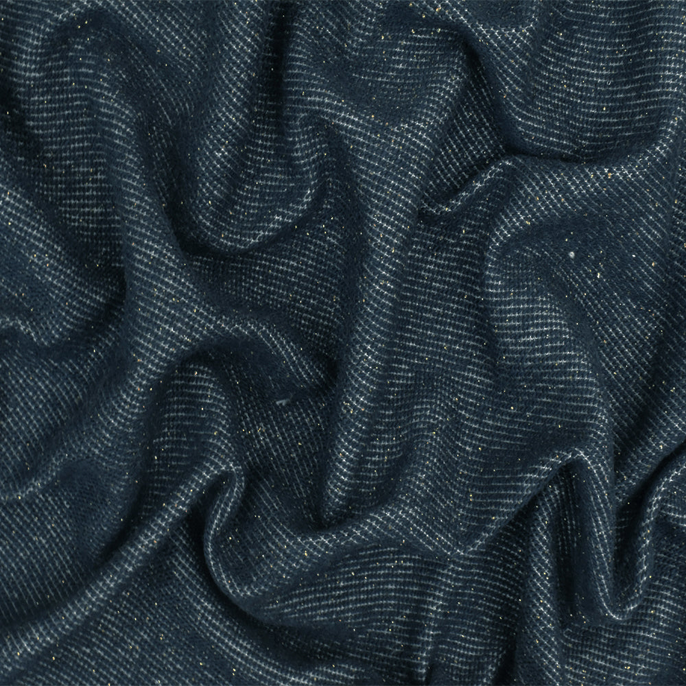 Navy Blue-Gold Sparkle Twill-Like Double Knit Fabric