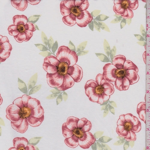 Off White/Rose Pink Floral Double Brushed Jersey Knit Fabric