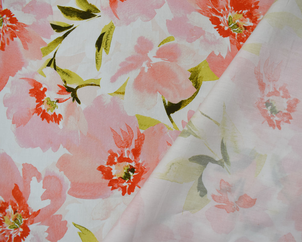 -100% Cotton plain woven broadcloth fabric printed with a stylized floral pattern