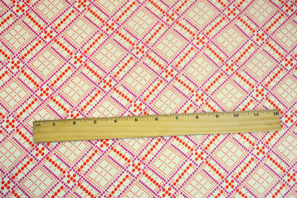 Orange-Multi Geometry Dot Print Stretch Poly Ghost Crepe Woven Fabric