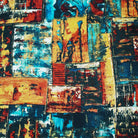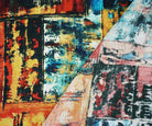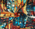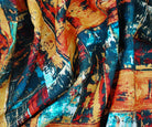 Orange-Teal-Multi Abstract Art Printed Linen Woven Fabric