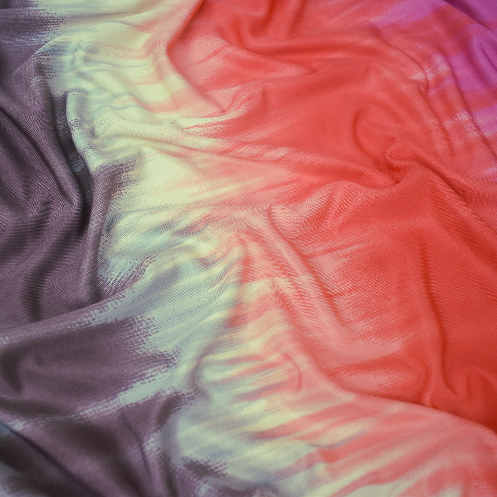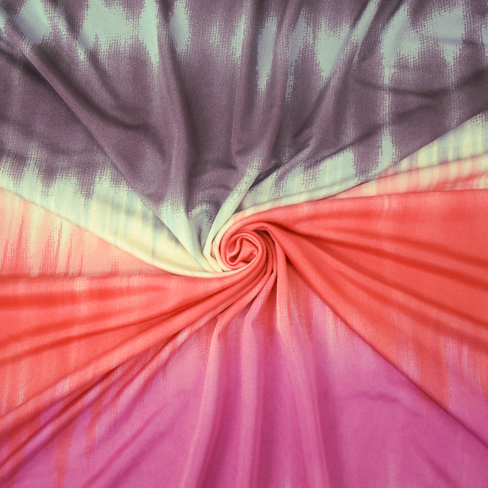 Pink-Mauve-Ivory Tie Dye Printed Stretch Silk Jersey Knit Fabric