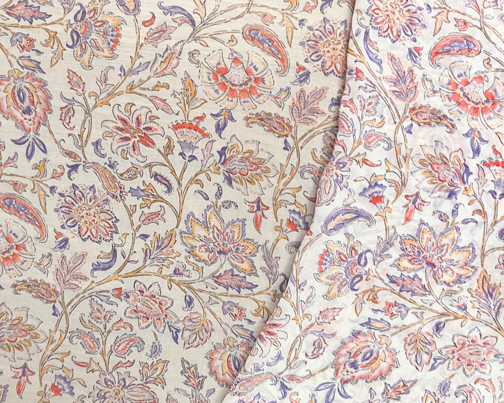 -Pink-Purple-Multi Poly Floral Printed Chiffon Woven Fabric