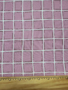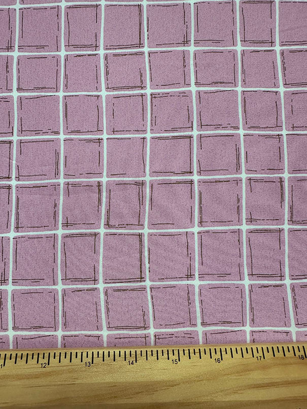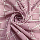 -Pink, White, & Brown Windowpane Print Crepe de Chine Fabric