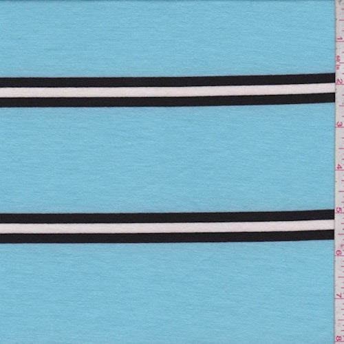 Powder Blue/Black Stripe Double Brushed French Terry Knit Fabric