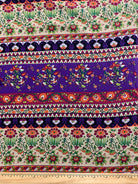 Purple Multi Floral Stripe Print Rayon Challis Fabric