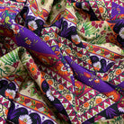 -Purple, Red, White, Orange, Green, Black, & Gold Multi Floral Horizontal Stripe Print Rayon Challis Fabric