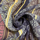 -Purple, Pink, Yellow, White, & Olive Green Multi Stripe Poly Print Sheer Chiffon Fabric