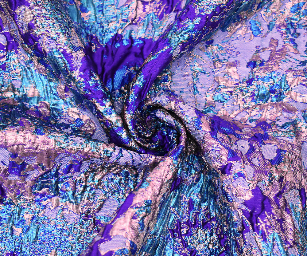 Purple-Pink-Multi Poly Blend Metallic Abstract Matelasse Jacquard Brocade Fabric