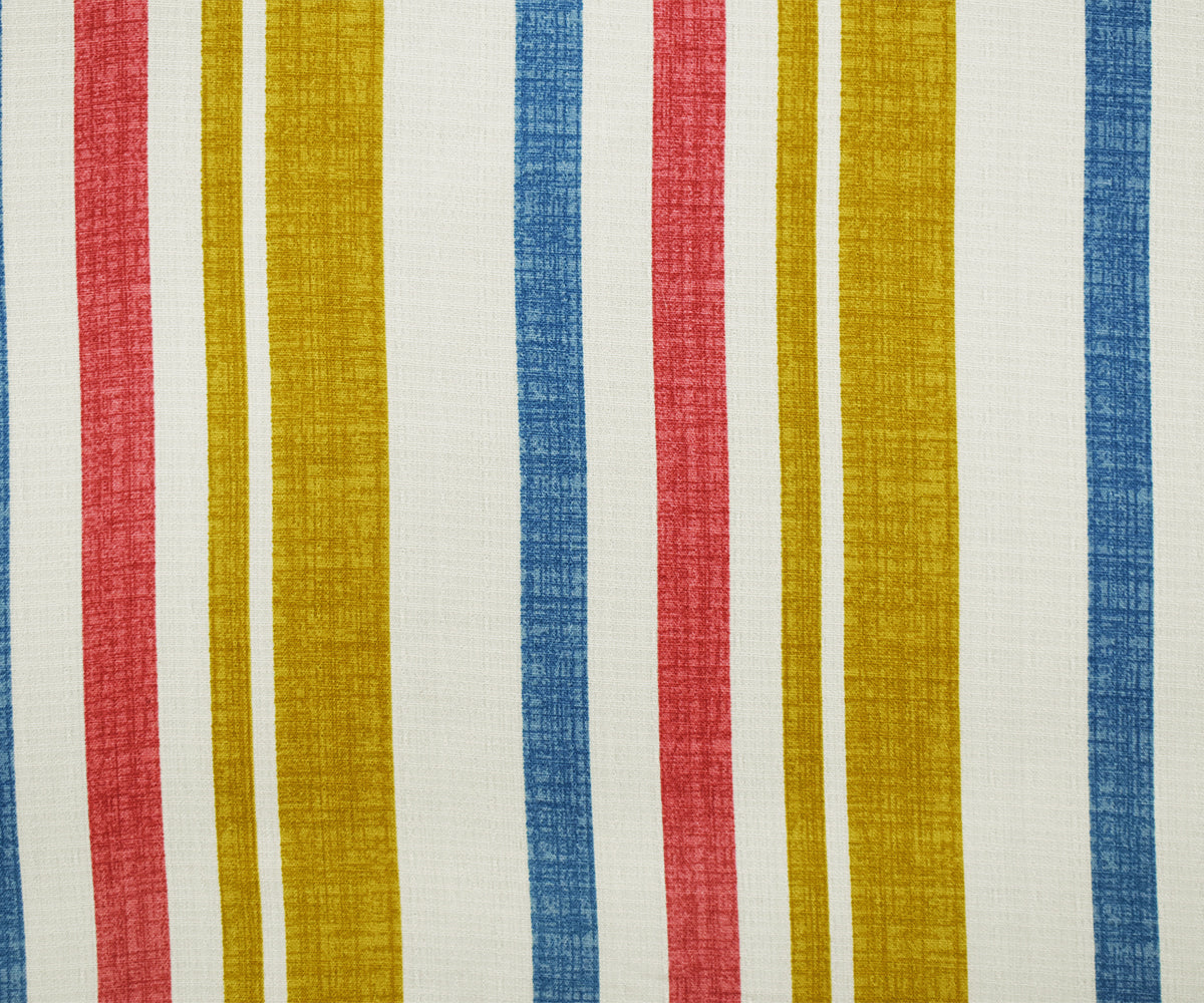 Red-Blue-Multi Poly Stripe Printed Slub Woven Fabric