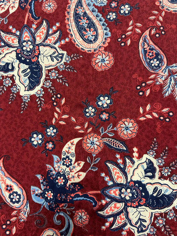 Red Multi Paisley Print High Crepe Fabric