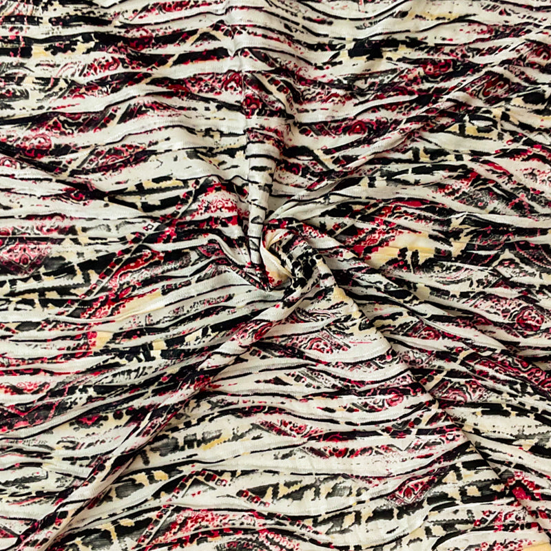 Red-Multi Poly Chevron Baroque Printed Knife Pleat Knit Fabric