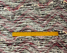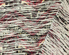 -A unique blend of red, beige, and multi Aztec-inspired chevron print creates a dynamic pattern, complemented by the fabric's pleated texture.