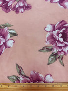 -Burgundy, White, Green, & Peach Multi Floral Print on Peach Stretch Mesh Fabric