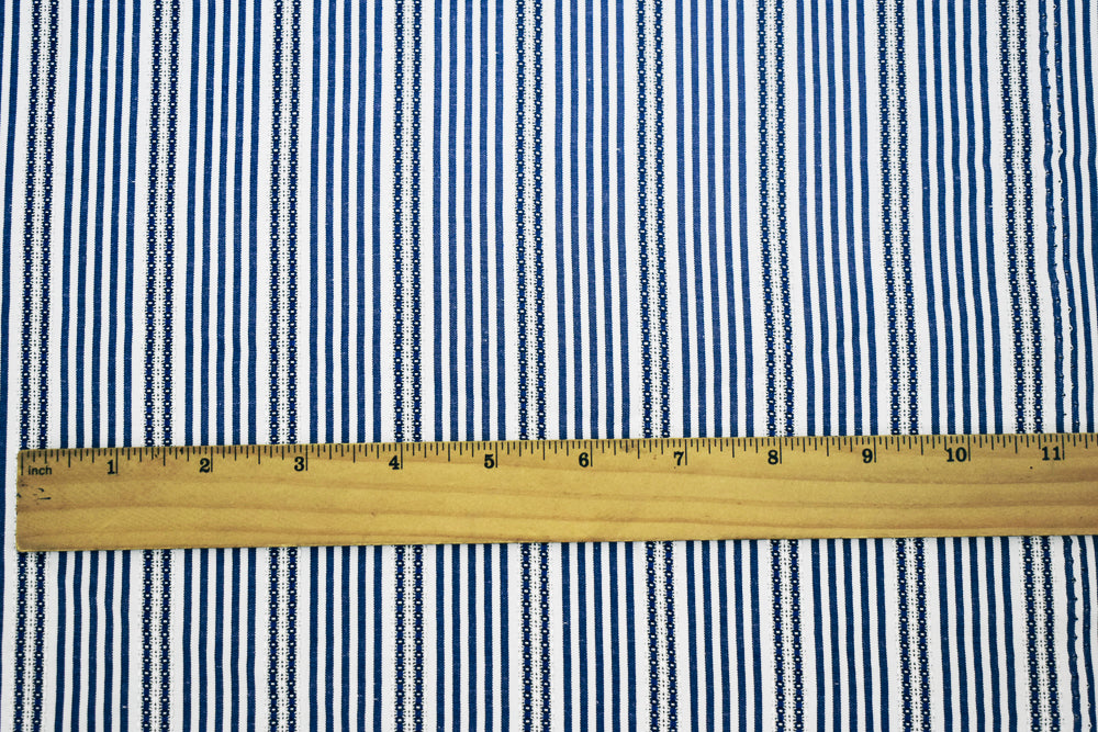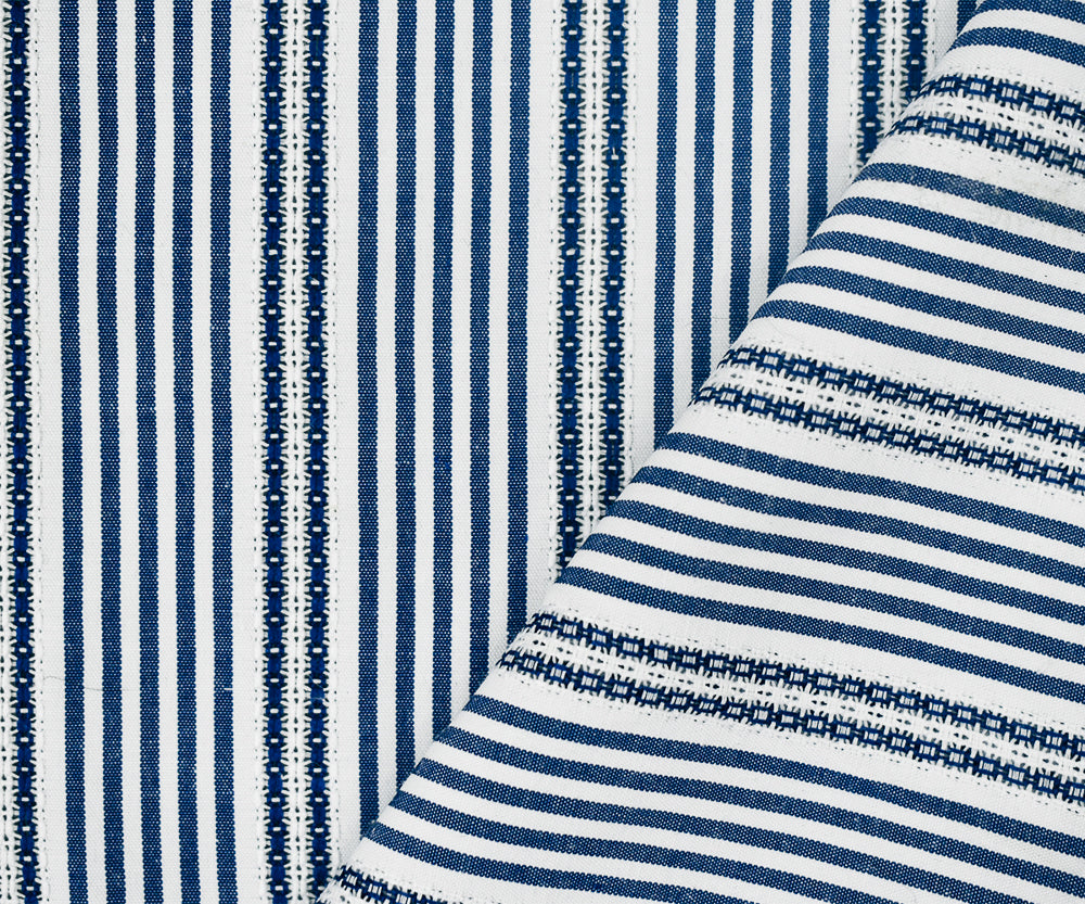 -100% polyester stripe woven with a dobby-like crochet inspired pattern woven fabric. Line if needed.