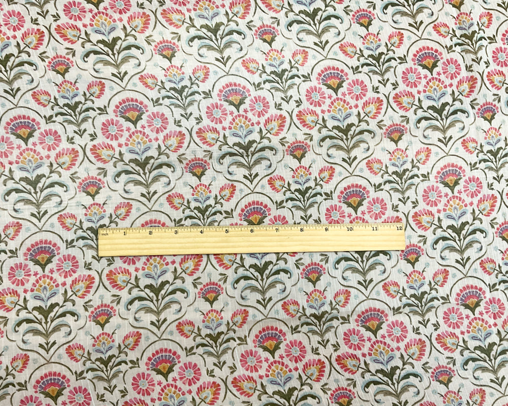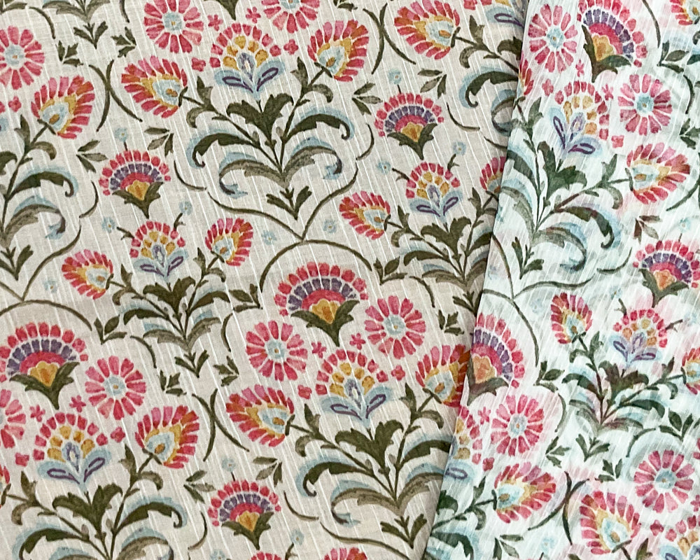 -White-Green-Multi Poly Floral Printed Crinkle Yoryu Chiffon Woven Fabric