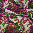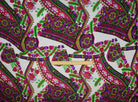 White--Multi Abstract Floral Border Print Stretch Silk Jersey Knit Fabric