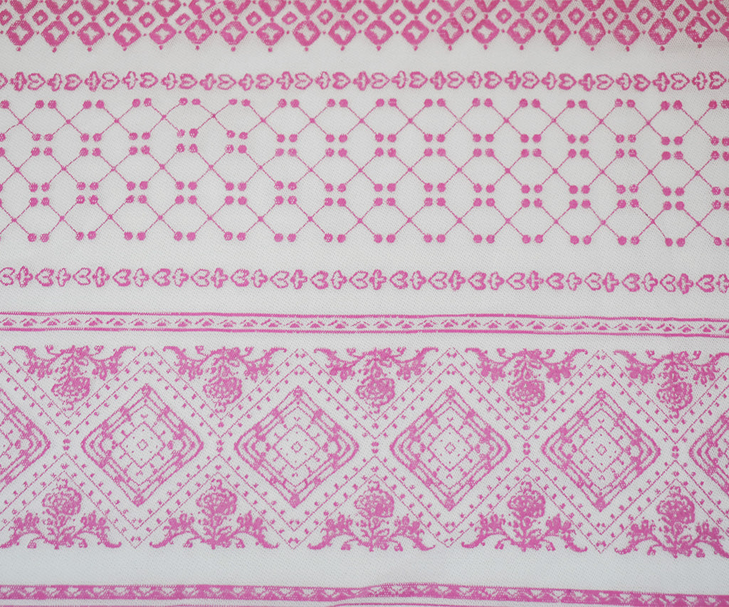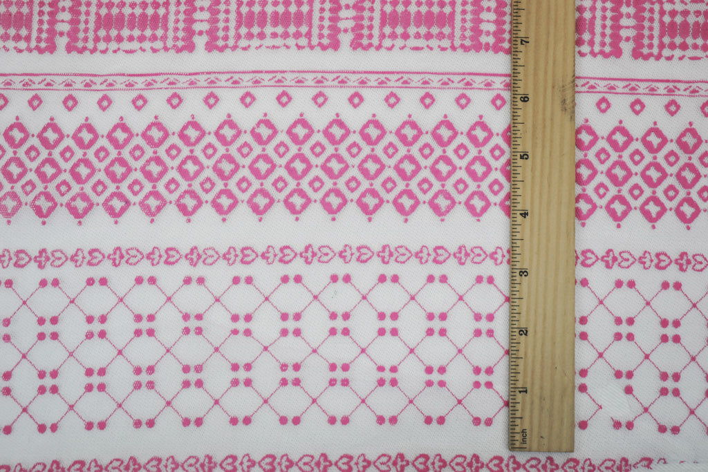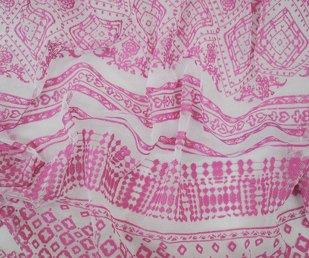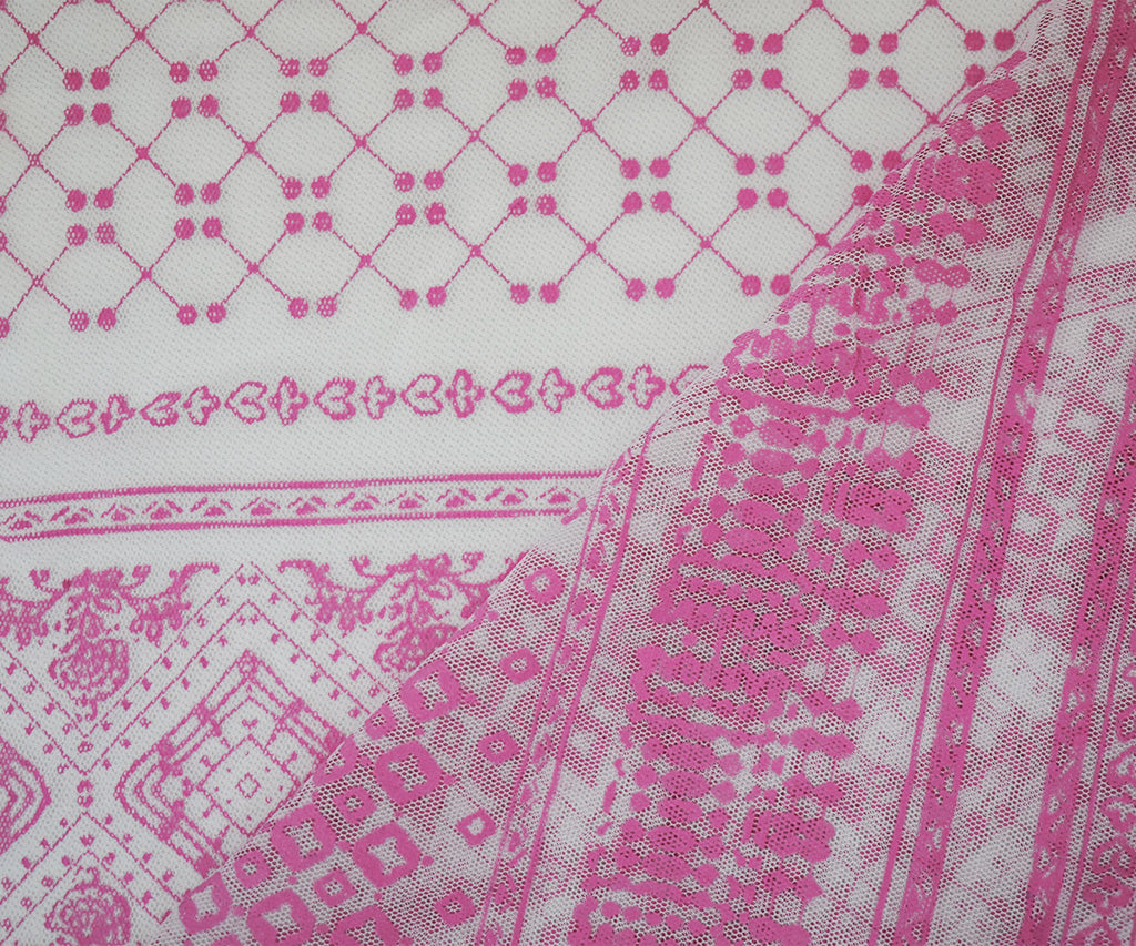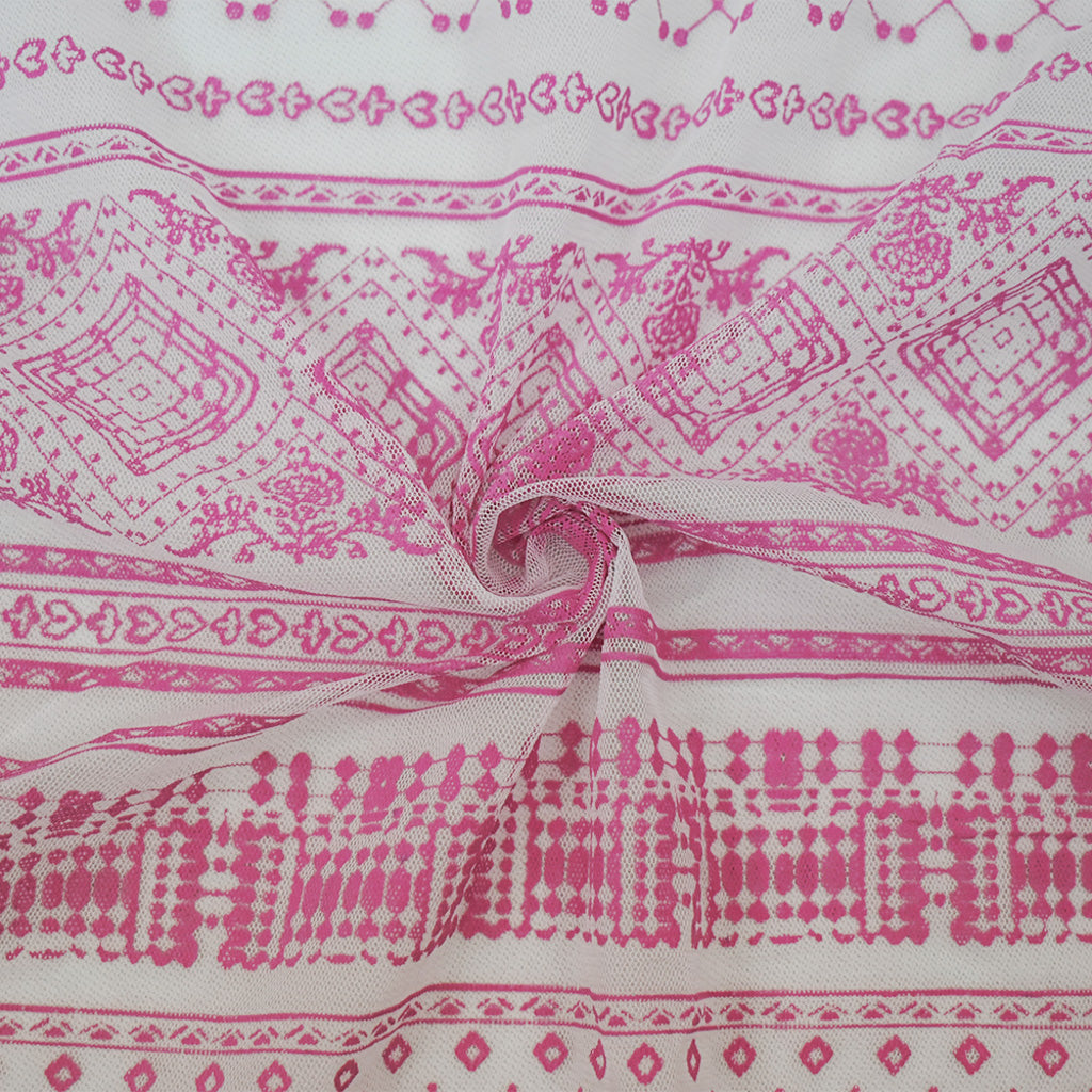 White-Pink Nylon Stretch Diamond Multi Pattern Stripe Print Mesh Tulle Fabric