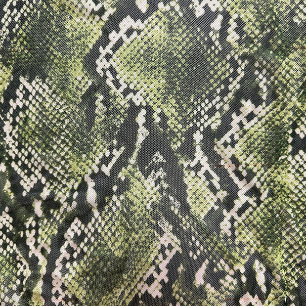 Stretch Mesh Knit Fabric - A breathable, flexible fabric characterized by an open, mesh-like structure created by interlocking loops of yarn, often with a blend of synthetic fibers like polyester, nylon, or spandex for elasticity. On-trend with many different applications and available in amazing prints and colors!